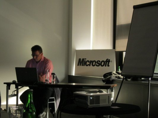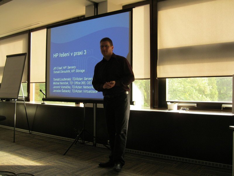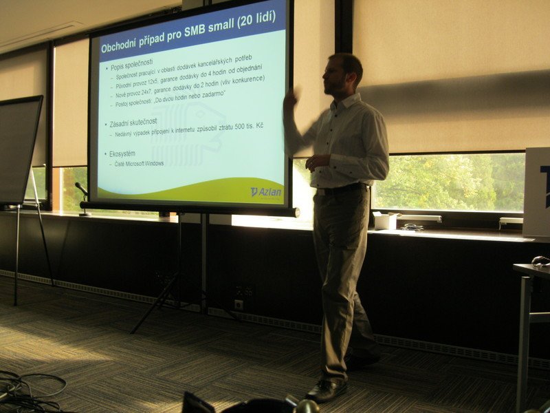 Představení řečníků a seznámení s programem již byla parketa Tomáše Louženského, konzultanta pro servery ze společnosti Tech Data Distribution. Spolu s Jaroslavem Šabackým, konzultantem pro virtualizaci společnosti Tech Data Distribution, sehráli scénku, ve které šlo o rozvoj obchodního případu pro SBM Small.