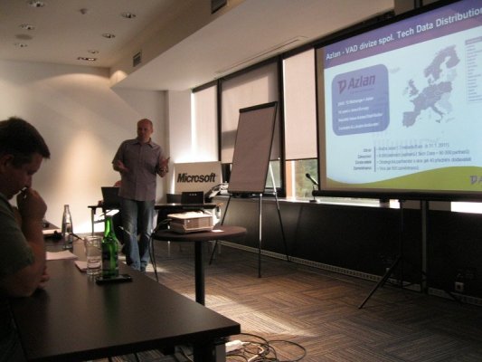 Po ranní kávě a registraci se úvodního slova ujal Pavel Novotný, produktový manažer serverů a storage společnosti Tech Data Distribution. Přivítal návštěvníky a obecně představil společnost. Nastínil také výhody, které vznikají resellerům, když spolupracují s divizí Azlan: „Výhody, které resellerům plynou u Azlanu jsou více než jasné: kombinace volume a value, ucelené portfolio, předprodejní konzultace, Demo Lab a hlavně vzdělávání pro partnery.“