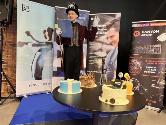 Součástí programu byl také slavnostní přípitek a proslov jednatele Petra Jandíka, který byl završen symbolickým přestřihnutím pásky. Následovalo krájení dortů, kterého se zhostili zástupci jednotlivých divizí. Role „kráječů“ se tak ujali Michal Walica (za divizi Consumer), René Svoboda (Volume), Jiří Krátký (VAD) a obchodní ředitel Roman Špička.
