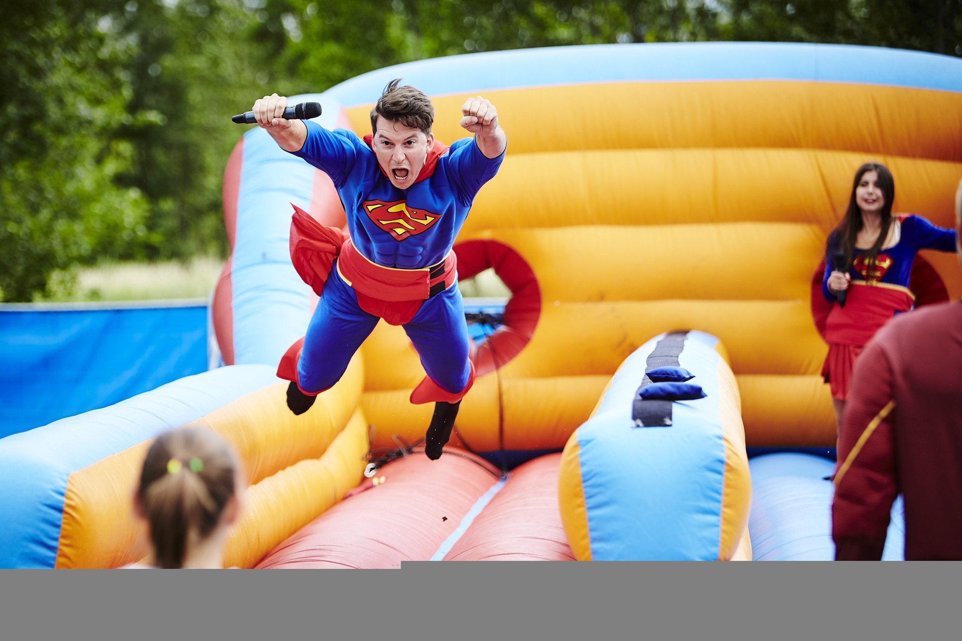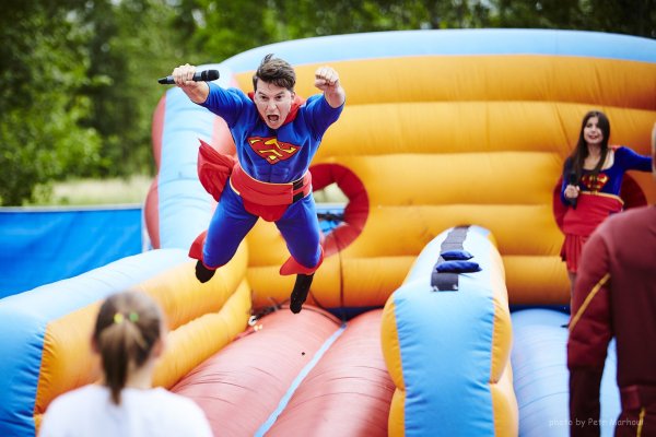Program akce startoval už úderem třetí hodiny odpoledne. Pro děti bylo připraveno několik stanovišť, za jejichž splnění získávaly nálepky a následně si mohly vybrat dáreček. Na stanovišti Spidermanův hod si vyzkoušely svou zručnost při hrátkách s jojem nebo řešily záhady u Hádankáře. Malí účastníci si mohli také zaskotačit na skákajícím hradu ve tvaru šaška či si zaskákat na mini bungee jumpingu. Ti, kteří nepřišli v kostýmu superhrdiny, se mohli nechat proměnit malbou na obličej v Superhero Factory. Moderátorka akce Veronika Lálová pak děti učila, jak se správně vlnit v rytmech písní Macarena nebo Chihuahua.
