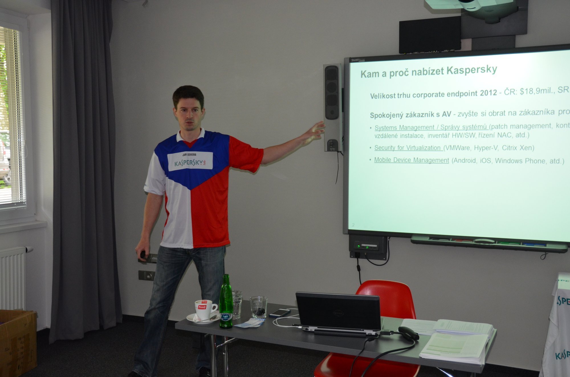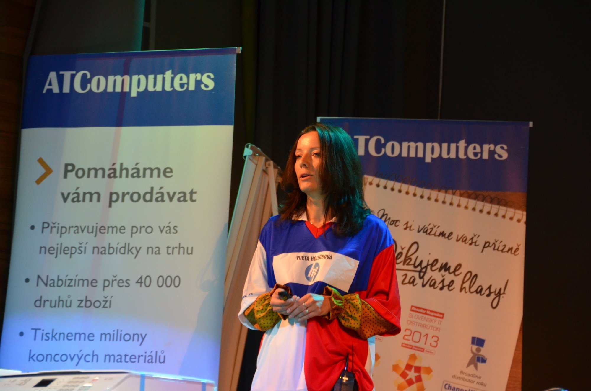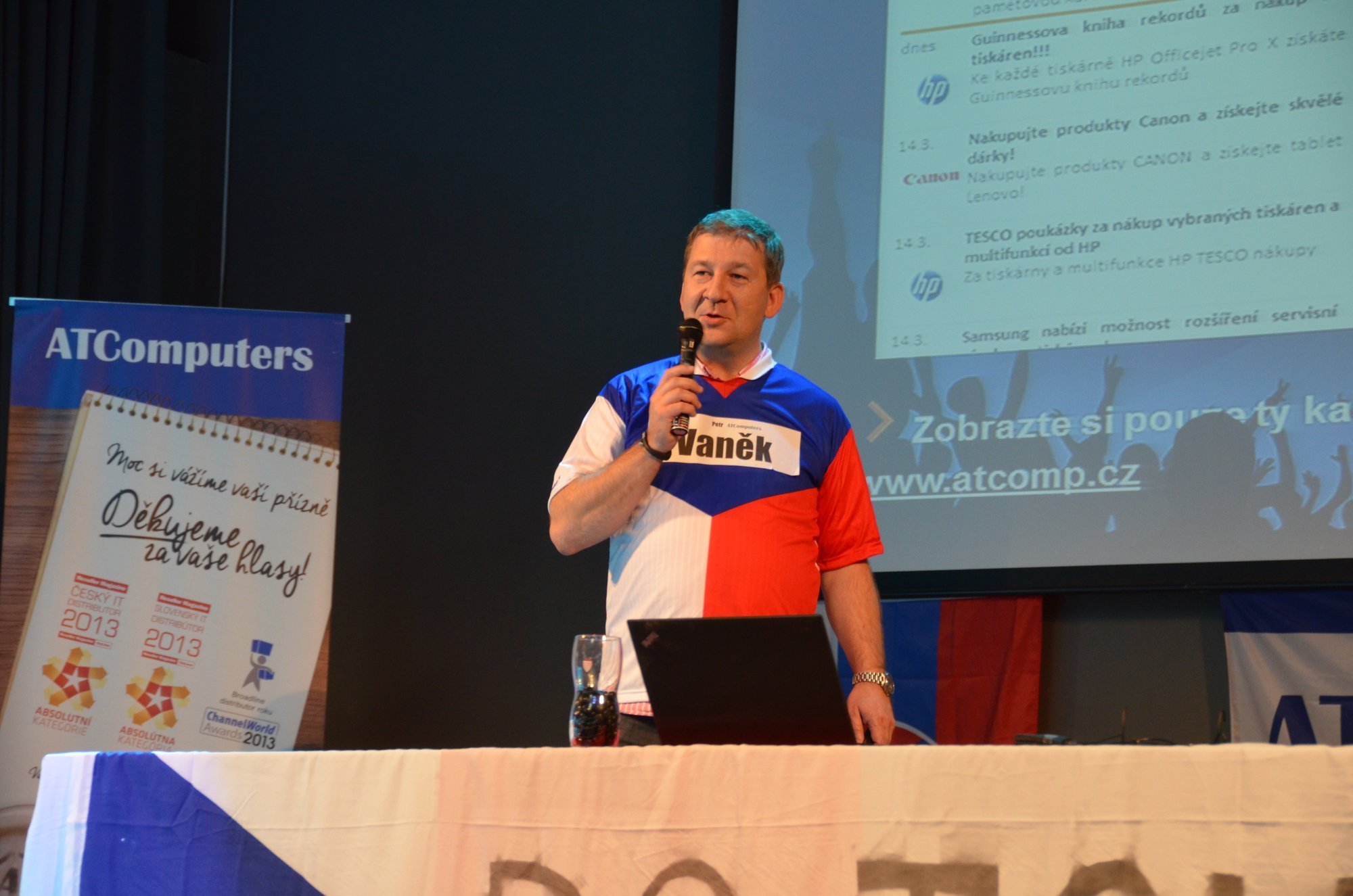 Po dopoledním školení vystoupil se svou přednáškou na téma vývoj trhu, novinky z ATC, zuřivý fanoušek Petr Vaněk, ve volném čase obchodní ředitel AT Computers, který na úvod shrnul loňský stav trhu s IT. Posluchačům bylo také připomenuto, že distributor má vlastní tým předprodejní podpory pro Microsoft, HP, Kaspersky Lab, servery, storage a sítě. V NAS zařízeních se zaměřuje na SMB (je distributorem Synology, Qnap, Lenovo, Netgear či D-Linku) a v distribuci má velké portfolio tabletů a smartpohnů od různých značek. V nabídce nechybí ani stále populárnější 3D tisk a řešení pro digitální domácnost. V e-commerci se zapracovalo na vylepšení objednávkového portálu, konkrétně vyhledávání či možnosti lépe ovládat systém dotyky. „V NASkách pro prodejce vidím velkou příležitost. Při jejím prodeji totiž můžete poradit nejen, jak funguje, ale také pomoci s její instalací a konfigurací do domácnosti a tak si přijít třeba na další dva tisíce korun,“ řekl na závěr svého vystoupení Petr Vaněk.