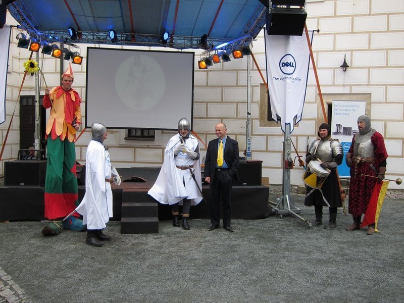Společnost Dell si místo setkání přejmenovala na Dellkovice a zároveň se postarala o bohatý doprovodný program v rytířském stylu. Stanislav Hájek přitom pěl slova chvály jak na bájný meč Latitude, tak na notebooky Dell stejnojmenné řady. Ondra Bačina vykřikoval Compellent!, Compellent!!! Jde o sofistikované řešení storage Dell Compelent, které umí obhospodařit data z opravdu mnoha Dell Latitude, a nejen z nich (notebooků, ne mečů).