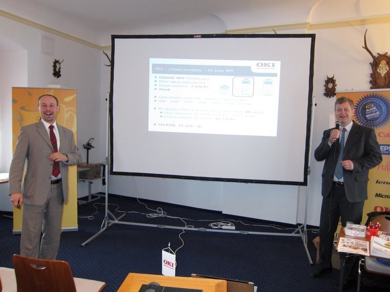 Oki naučila přítomné básničku „Oki – záruka tři roky“ a nabádala k prodeji tiskové služby podle počtu stránek, Konica Minolta také nezůstala pozadu, BenQ vylosoval monitor 3D, Corel poučil o licencování nejen pro školy a David Koďousek ze společnosti Hewlett-Packard nabádal k vylepení nálepky HP SalesPoint.