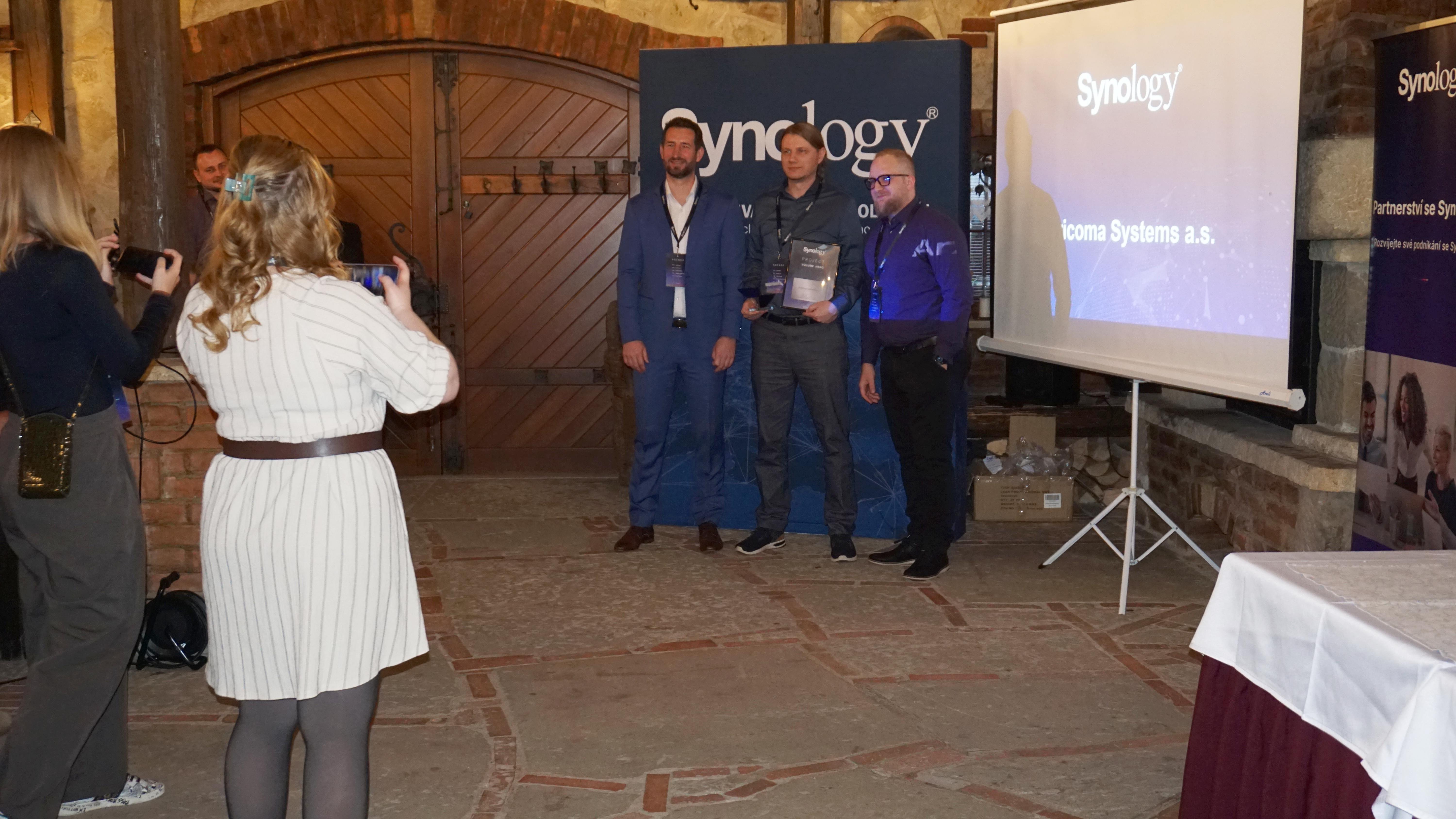 Hlavním (a posledním) bodem oficiální části programu bylo vyhlášení nejlepších partnerů za rok 2024, kterého se ujal solution engineer společnosti Synology Pavel Berry. Celkem pět ocenění si mezi sebou tentokrát rozdělily čtyři firmy: