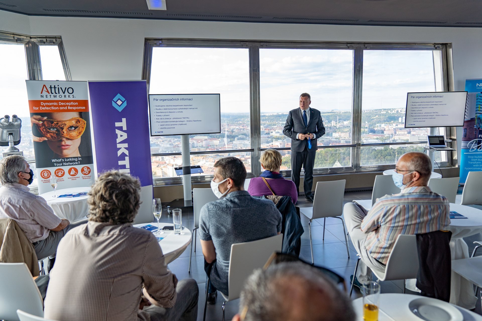 Účastníky prezentací přivítal CEO TAKTIKu Petr Belatka, krátce představil firmu a její zástupce a pohovořil o své cestě na Taiwan se senátní delegací, která se konala koncem srpna tohoto roku i o výhodách, které mohou pro naše zákazníky přinést nové obchodní kontakty s taiwanskými firmami. Poté předal slovo Zdeňkovi Koptovi a Lukáši Březinovi z TAKTIKu. Ti společně představili účastníkům řešení pro kybernetickou bezpečnost společnosti Attivo Networks. Jde o komplexní ochranu vnitřní sítě, cloudu a detekci průniků do firemních poboček na základě vytvoření falešné infrastruktury založené na reálných systémech zákazníka. Pomocí nástrojů a návnad se veškeré útoky vedené na infrastrukturu zákazníka přesměrovávají do falešného prostředí. „Pravá“ infrastruktura zákazníka je tak před cílenými útoky ochráněna.