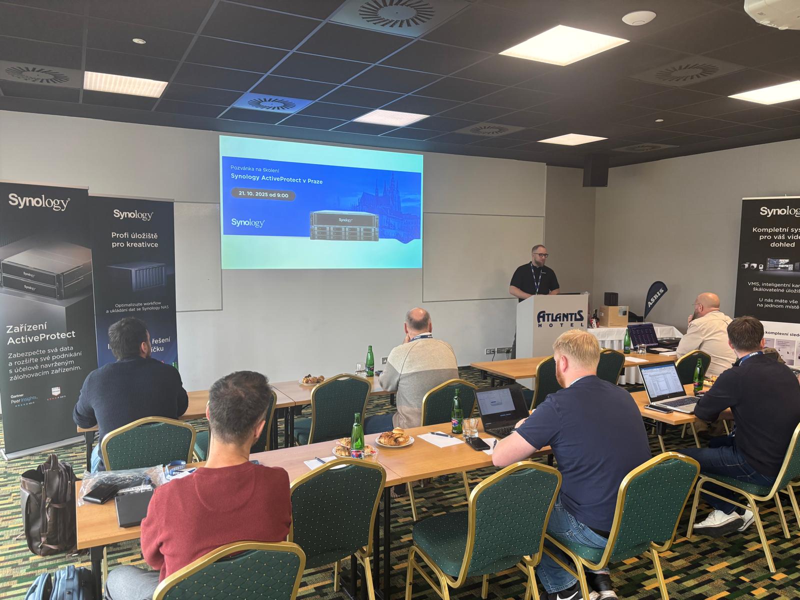 Školení vedl Pavel Berry, solution engineer společnosti Synology, který účastníkům představil nejnovější nástroj Synology ActiveProtect. Ten slouží k centralizované správě zálohování a obnovy dat napříč různými zařízeními a platformami. Berry se zaměřil nejen na technické funkce, ale především na praktické využití v reálném provozu – od malých firem až po rozsáhlé IT infrastruktury.