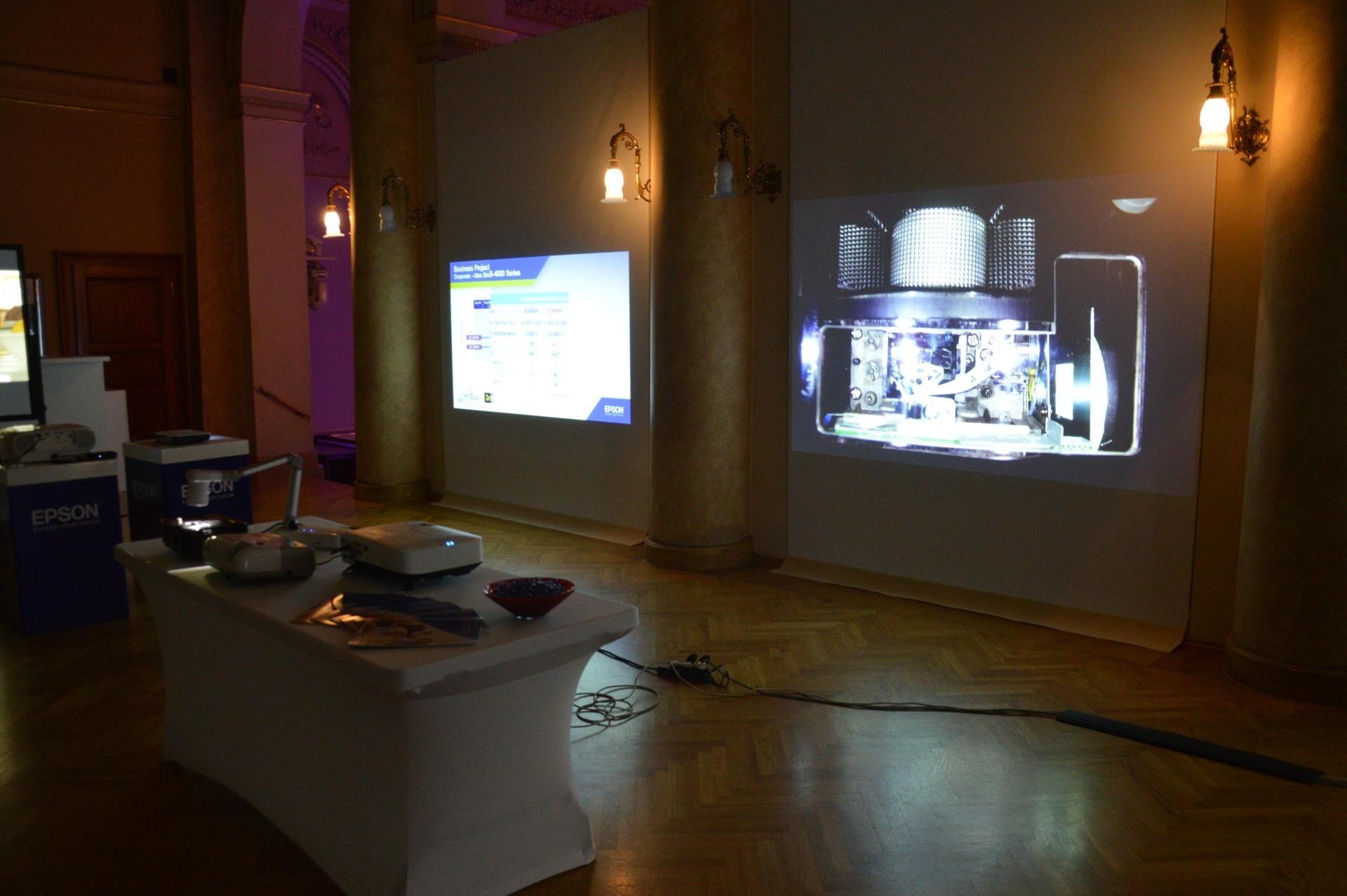 Na Technologických dnech bylo k vidění i velké množství projektorů. Business kategorii zastupoval například projektor EB-696Ui s dotykovým ovládáním, projekční plochou až 100 palců a rozlišením Full HD, který se často využívá ve školství pro kvalitnější a zajímavější výuku. Další zajímavý projektor s označením EB-700U nabízí širokou škálu možných využití. Dokáže vytvořit jasný obraz o velikosti až 130 palců a nabízí 20 000 hodin spolehlivého provozu, a je proto vhodný pro obchody, galerie, muzea i kanceláře. Stále populárnější technologie laserových projektorů byla zastoupena novými přírůstky v řadě středních projektorů L4xx / L5xx / L6xx se svítivostí 4 500 až 6 000 lumenů, které nabídnou robustní konstrukci a variabilní použití