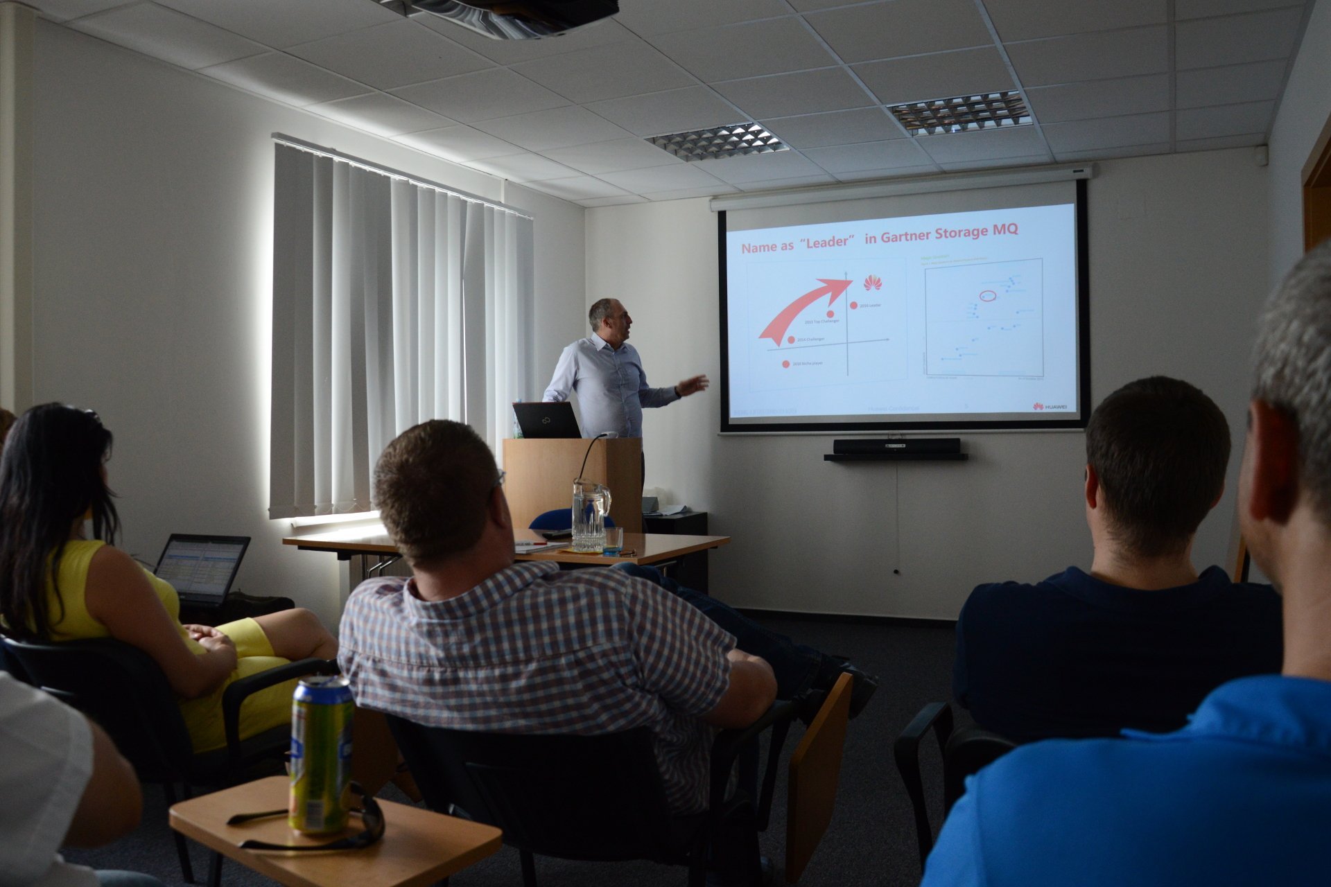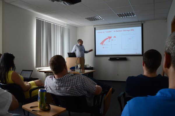 Z důvodu parného odpoledne zkrátil přednášející David Takač, obchodní ředitel Entec Solutions, svou prezentaci na nejnutnější minimum s tím, že konkrétní dotazy bude moci zodpovědět posléze individuálně. V prezentaci se zaměřil především na podání nejdůležitějších informací o společnosti Huawei – o jejím výrazném růstu podílu na trhu. Přítomné seznámil s nejnovějšími rack servery v provedení 1U a 2U a úložiště pro SMB, které Huawei právě uvádí na český trh. Zároveň předvedl ukázkové možnosti při konfiguraci serverů a získání výrazných slev pro partnery. Poté ještě hostům připomněl partnerské portály, jejichž prostřednictvím mohou nakupovat a vše ukončil mottem: „Pojďme prodávat servery Huawei!“