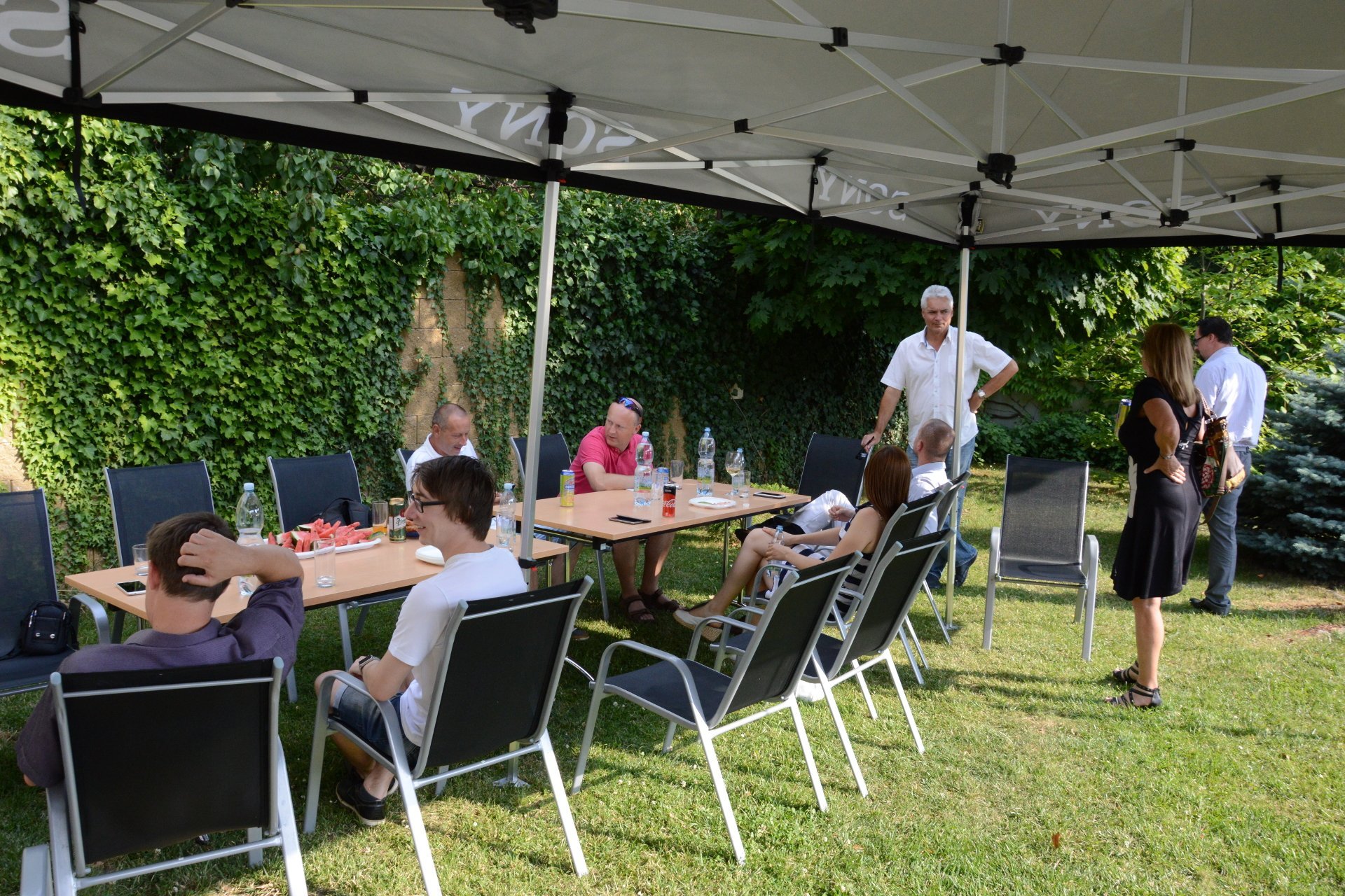 Na přednášku navázalo grilování na zahradě pražské pobočky společnosti SWS. Partneři se mohli nerušeně konkrétně doptat na problémy, s nimiž by potřebovali pomoct. I při téměř nesnesitelném horku se za přispění kvalitně chlazených nápojů a piva rozproudila dobrá nálada, takže odpoledne i nadále pokračovalo ve velice uvolněné atmosféře.