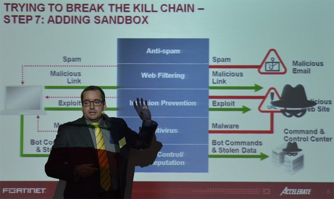 Na Václavíka navázal přednáškou nazvanou Bezpečnost bez kompromisů Ondřej Šťáhlavský, oblastní ředitel Fortinetu, který upozornil na úskalí next-gen firewallů a představil, jak chápe bezpečnostní řešení společnost Fortinet.