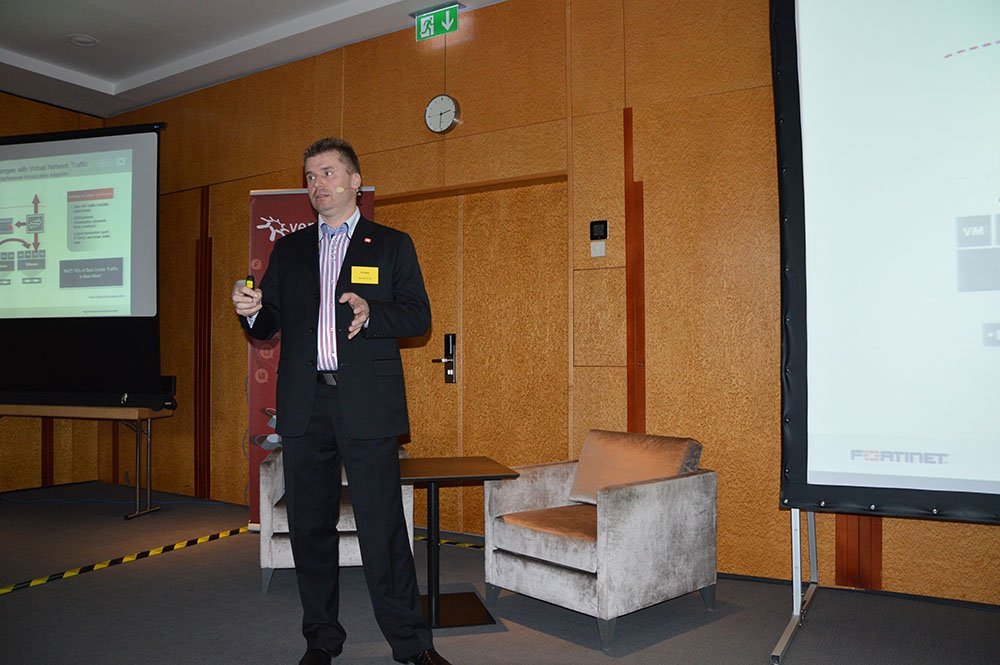 V další přednášce se integraci se systémy pro řízení virtuálních zdrojů věnoval Horymír Šíma, major account manager z Fortinetu. Šíma se zaměřil na kompatibilitu a možnosti využití virtuálních systémů Fortinet s produkty třetích stran.