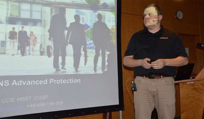 Po přestávce se k tématu bezpečnosti vrátil Adam Obszynski, regional sales engineer z Infoblox, který se věnoval DNS útokům. Ukázal, jak systém od Infobloxu dokáže ochránit DNS proti různým druhům útoků pomocí rozlišení správného DNS provozu od nežádoucího