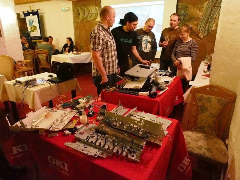 Závodem na saních také bylo setkání v sobotu večer zakončeno, završeno však bylo veřejnou pitvou mrtvé tiskárny, rozebrané doslova na prvočinitele.