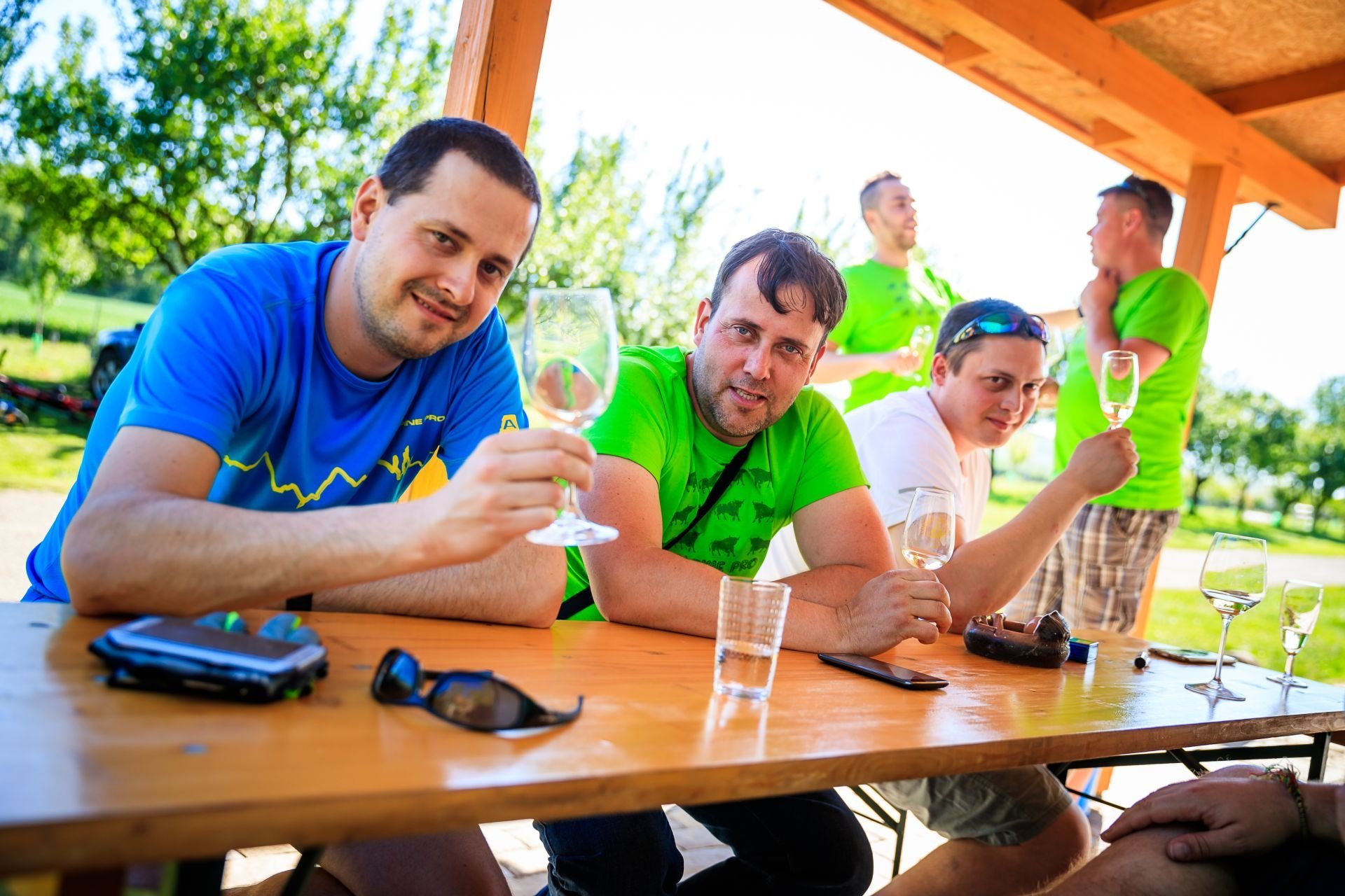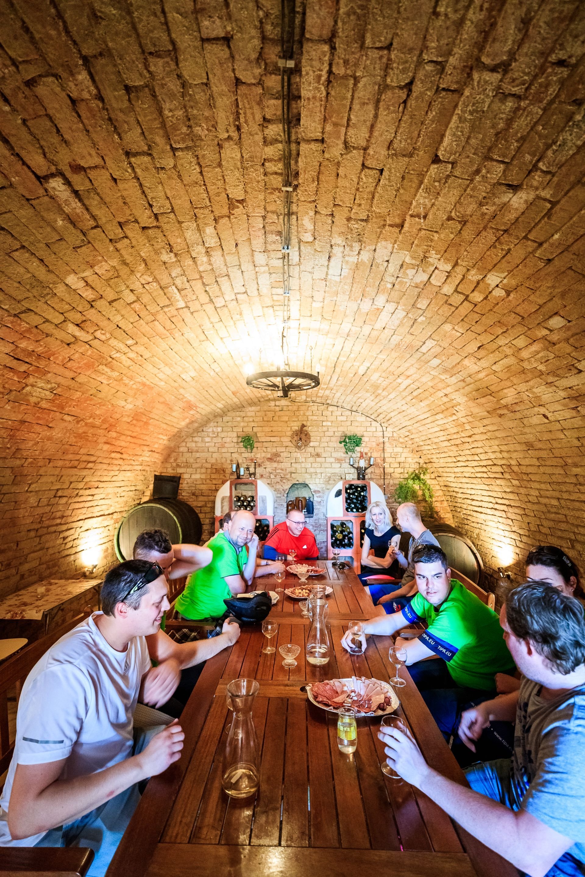 Cyklisté se následně vrátili do pensionu, kde pro ně byla připravena řízená degustace vín a raut s pečením selátka, takže měli zákazníci dostatečný prostor na méně formální diskusi se zástupci přítomných výrobců. Zlatým hřebem bylo losování tomboly s hlavní cenou v podobě vinotéky Tristar naplněné vínem.