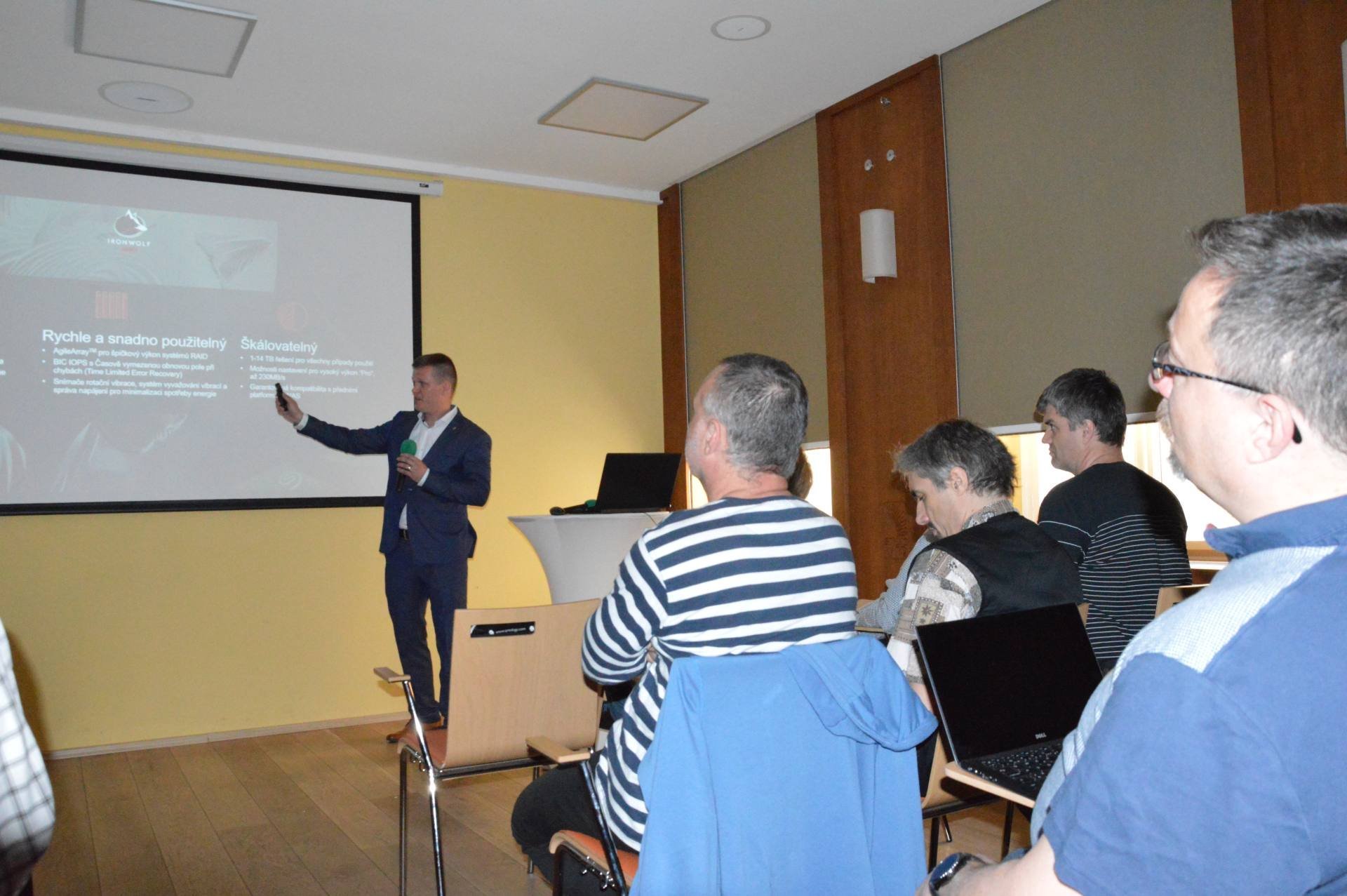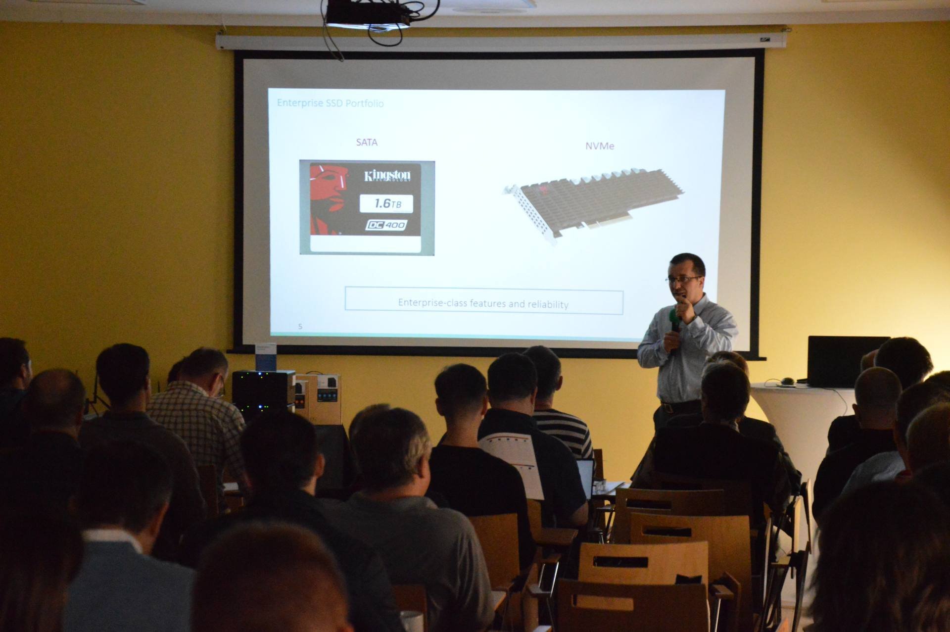 Celým dnem návštěvníky provázela Janka Chytráčková, produktová manažerka společnosti Synology, jež se ujala i úvodního slova a představila také zástupce partnerských firem Marcina Gaczora za Kingston a Marka Řihoška za Segate, kteří velmi stručně promluvili o nejžhavějších novinkách obou výrobců a pro případné dotazy resellery odkázali na prezentační stolky, u nichž jim pak mohli vše názorně vysvětlit. První přednáškový blok uzavírala případová studie produktů Synology ve společnosti Blue Sky Film Distribution, o níž promluvil Josef Barák. Vzhledem k tomu, že tato společnost nakládá s filmy ve vysoké kvalitě, musí tedy disponovat technologií schopnou práce s vysokými objemy dat v co nejkratším možném čase. Společnost Synology a její produkty tak v tomto případě pomohly vyřešit problémy s konsolidací, ale i jistou separací úložišť a s vysokorychlostním připojením.
