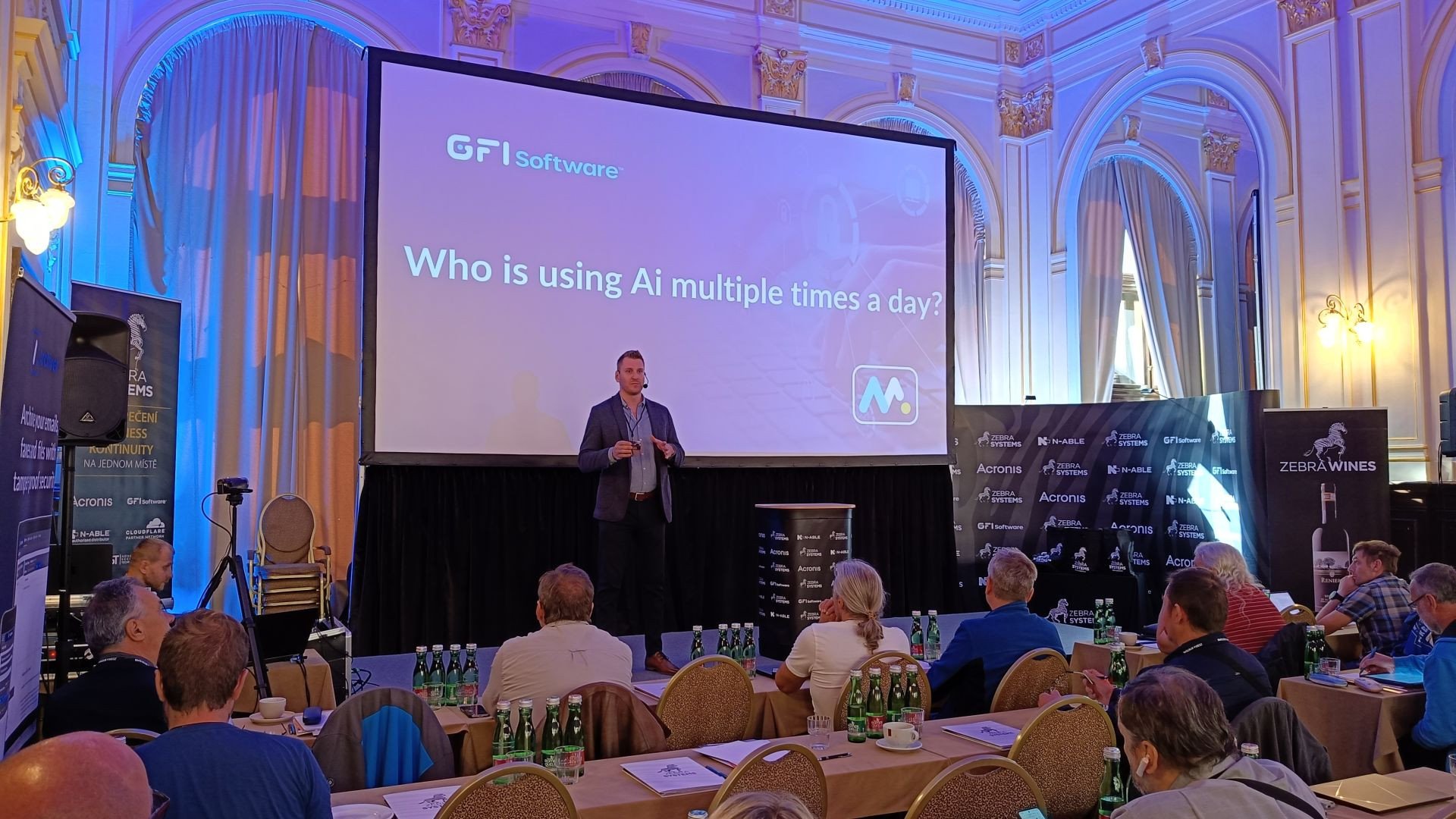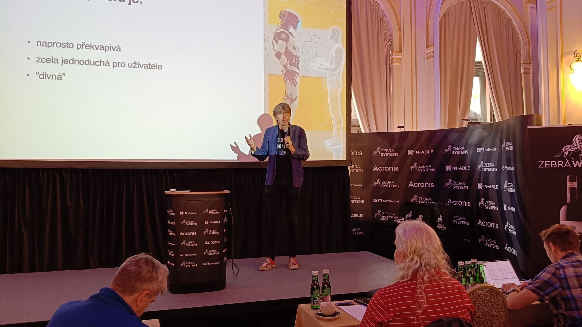 Pražská „zastávka“ proběhla v hotelu Kings Court a zahájil ji CEO společnosti Zebra systems Zdeněk Bínek. Aleš Hok, obchodní ředitel společnosti Zebra systems, navázal s krátkým představením firemního portfolia, které v nedávné době rozšířily další dvě značky: Simeon Cloud (platforma pro správu prostředí Microsoft 365) a úplná novinka Virtuozzo (alternativa k nástrojům od VMwaru).