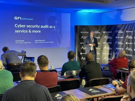 Josef Kačala, vicepresident of global sales engineering v GFI Software, se ve své prezentaci zaměřil na koncept cyber security auditu (formou služby) jako klíčový krok v ochraně sítí a dat. Uvedl, že dosažení 100% bezpečnosti je prakticky nemožné, ale audit umožňuje minimalizovat rizika.